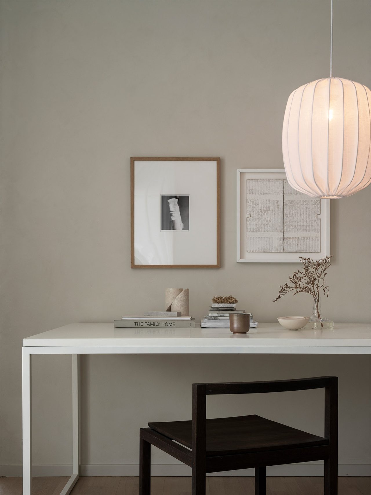 Med en klassisk pumpaform är Boll 65 linen Natural en bra taklampa för det lite större rummet.