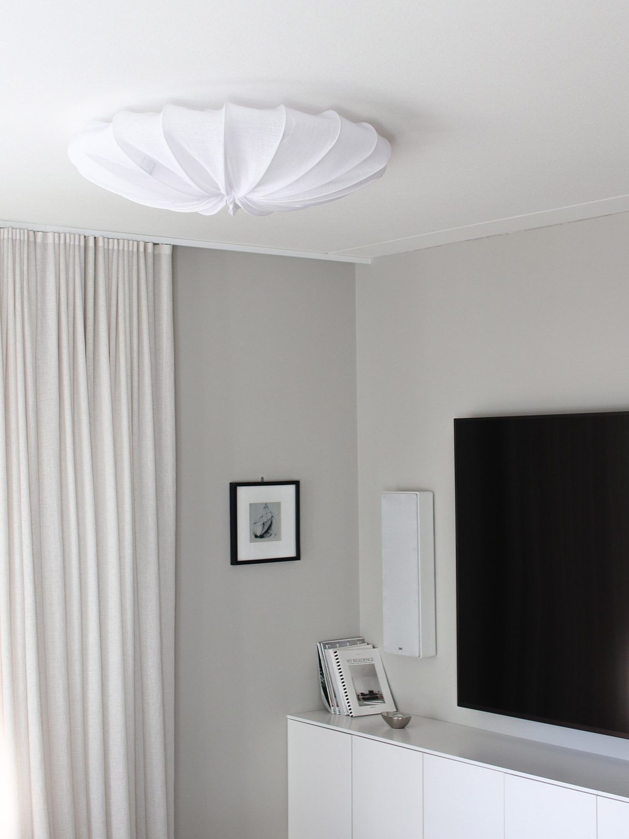 Anna 80 linne plafond i vitt, krispigt linnetyg, med en härlig textur och en form som gör henne nätt och elegant, som en diskret blomma i taket. Designen har sitt ursprung i ett tidigare samarbete med formgivaren Anna Hörling. Släckt är Anna 80 linne White en stor, mjuk tygskulptur och när du tänder de fyra ljuskällorna får lampan ett helt annat uttryck. Stålställningen framträder och förstärker lampans form samtidigt som ljuset silas vackert genom linnetyget. En takplafond för hemmets alla rum.Höjd cm 17 Diameter cm 80 Färg Vit Finish Matt Material Linne/stål Ljuskällor 4 st Sockel E27 Max watt 60 Takupphäng Ingår