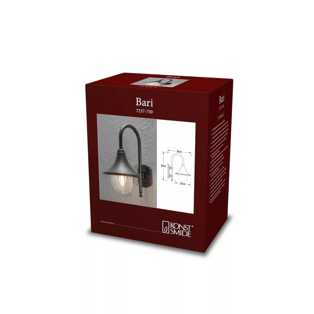 Märke Gnosjö Konstsmide Färg Svart Utomhus Ja EAN-kod 7318307237757 E-nummer 7721840 Material Aluminium Spänning 230-240V Strömkälla Nätspänning Watt Max 60W Antal lampor 1 Ljuskälla ingår Nej Sockel E27 Utbytbar ljuskälla Ja Dimbar Ja, beroende på ljuskälla IP-klass IP44 Inbyggd dimmer Nej