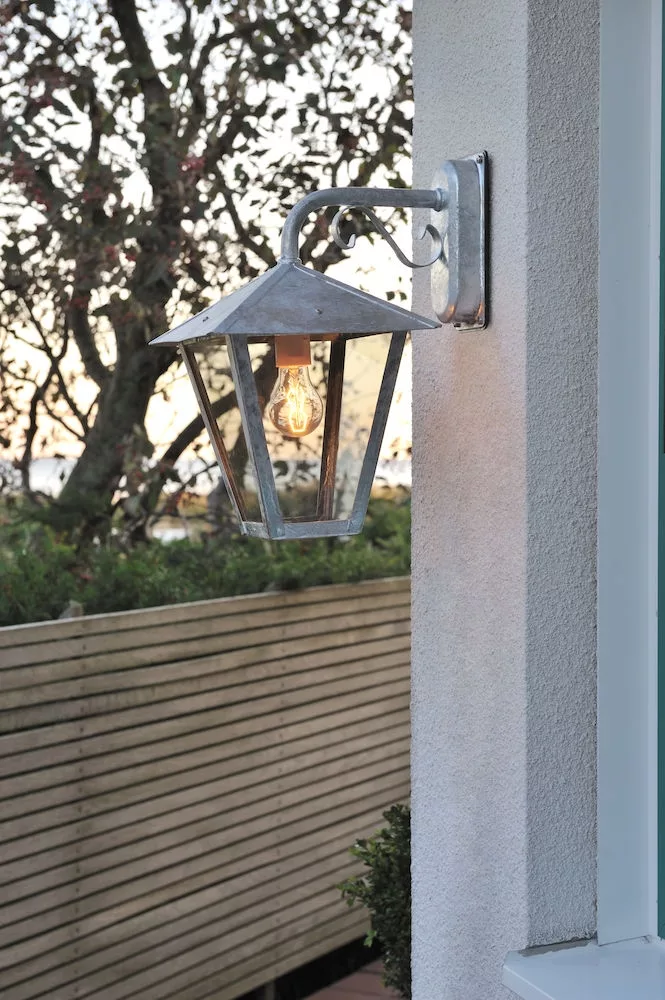 Benu vägglykta ned E27 galv från Gnosjö Konstsmide är en stilfull och funktionell utomhusbelysning som kommer att ge ditt hem eller trädgård en elegant touch. Denna vägglykta är tillverkad av högkvalitativt galvaniserat stål, vilket ger den en robust och hållbar konstruktion som tål väder och vind.