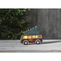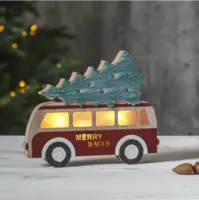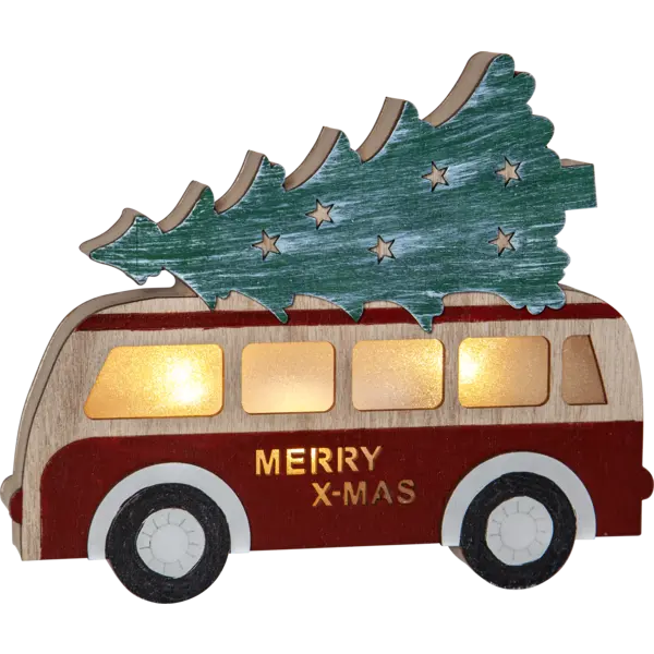 Buss med julgran på taket, gjord av trä. Dekorera barnrummet till julen och den lyser fint i fönstret och ger en mysig julstämning.