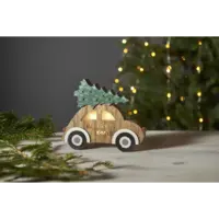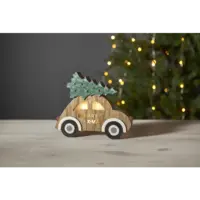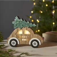 Bil med julgran på taket, gjord av trä. Dekorera barnrummet till julen och den lyser fint i fönstret och ger en mysig julstämning.