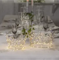 Vacker inomhusdekoration i form av en krona. En dew drop slinga är lindad runt formen. 120st varmvita LED ljuspunkter som drivs av batterier. Fin dekoration till jul och en magisk detalj till festdukningen.