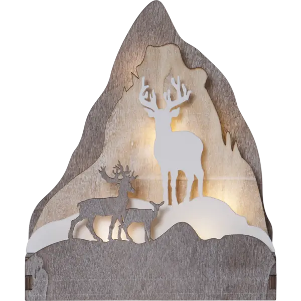 Batteridriven bordsdekoration med varmvitt sken. Dekorationen är av trä och har många fina detaljer. En underbar dekoration som sprider julstämning i hemmet.