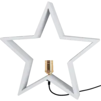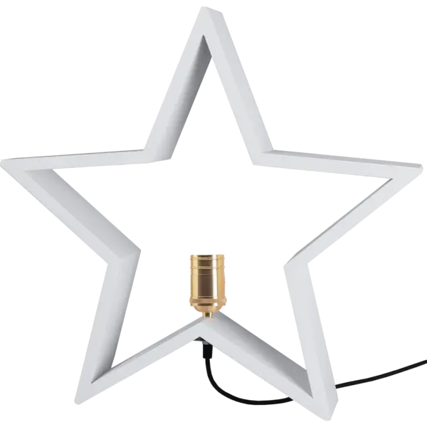 Vit trästjärna med metallsockel. Fin dekoration att ha på bordet och i fönstret. Kombinera stjärnan med en snygg ljuskälla.