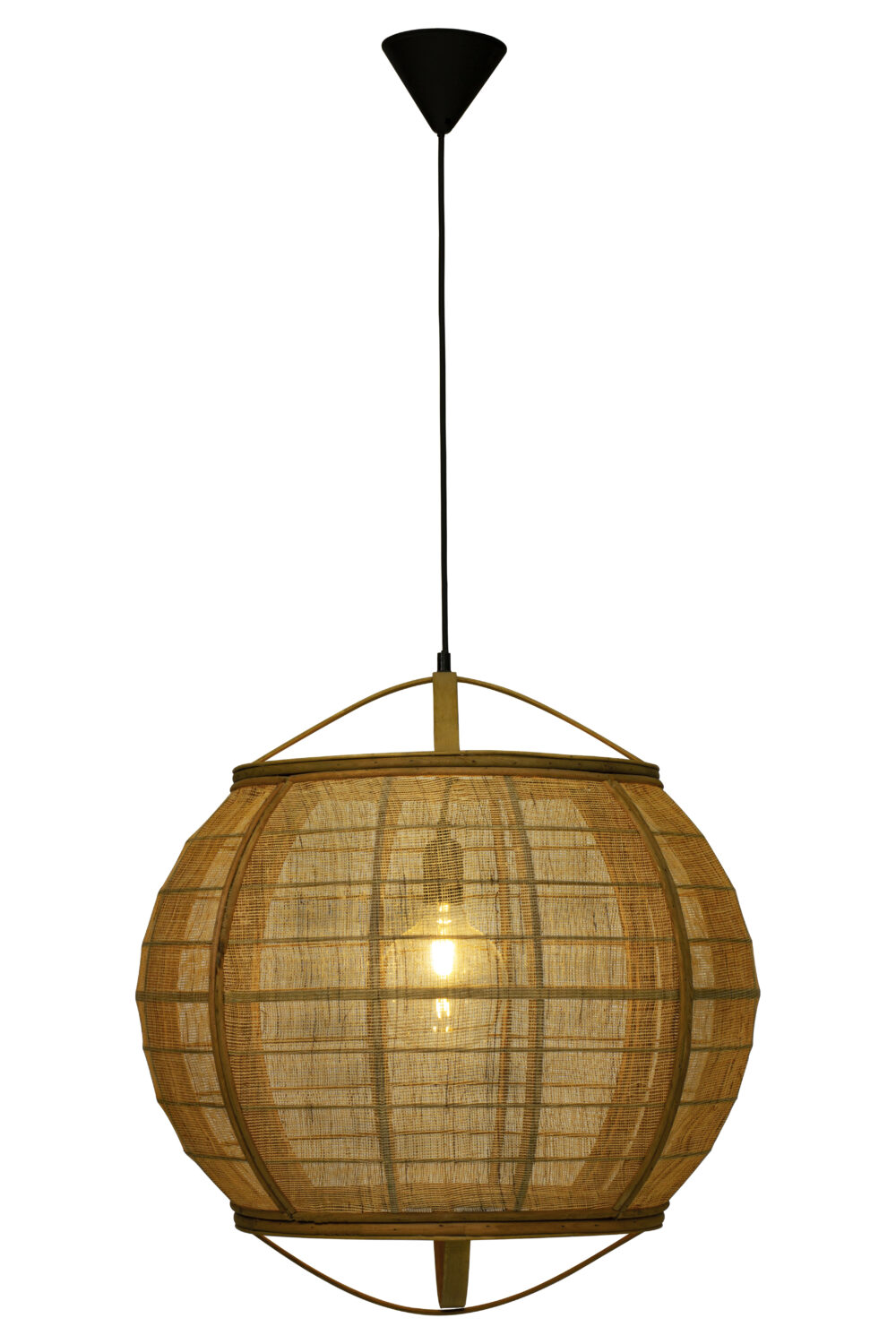 BORNEO taklampa har en unik form med flera horisontella trästänger som omger ljuskällan. Denna design ger en vacker och diffus belysning som sprider sig jämnt över rummet. Den naturliga färgen på träet ger också en varm och inbjudande känsla till ljuset.