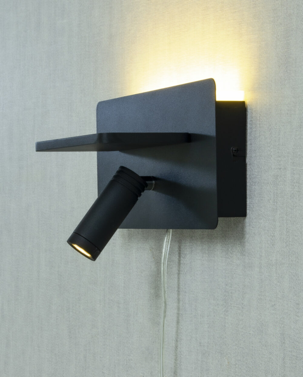 Vägglampan har en modern och minimalistisk design som passar perfekt in i de flesta inredningsstilar. Den är tillverkad av högkvalitativa material och har en snygg svart finish som ger den en elegant touch. Med sina rena linjer och diskreta utseende blir den en stilfull detalj i rummet.