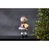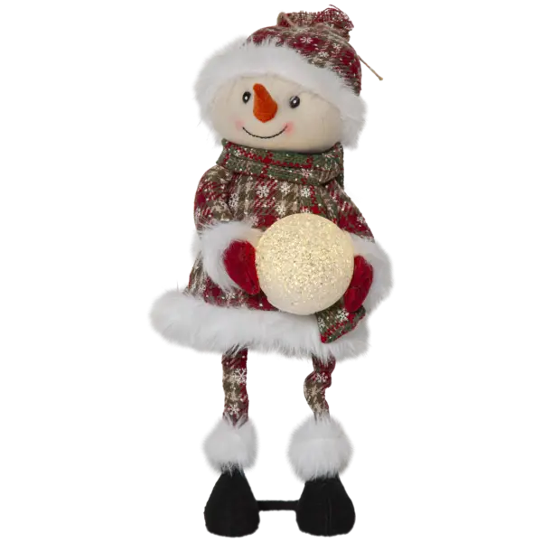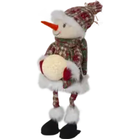 Dekorativ snögubbe för dekoration. Snögubben håller en snöboll som lyser fint i mörkret. Den söta snögubben har grön/röda kläder med vita detaljer. Produkten drivs av 3st CR2032-batterier, dessa ingår.