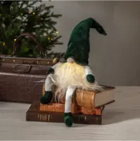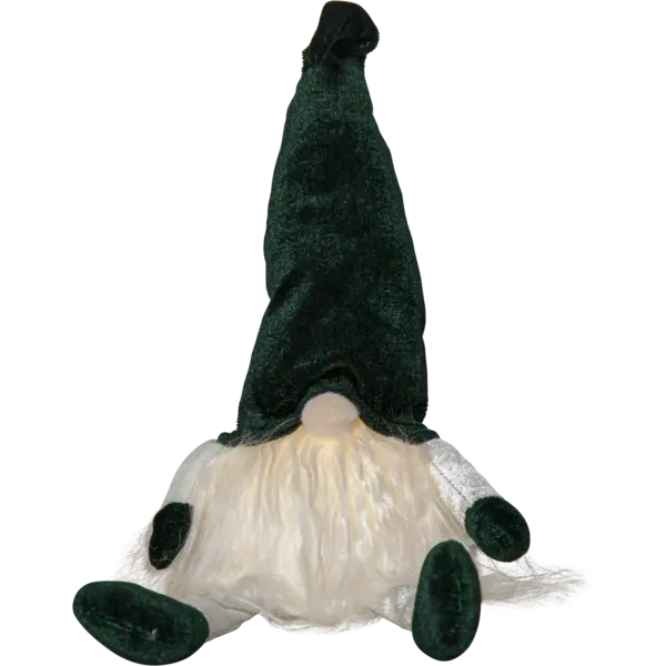 Batteridriven dekorationsfigur med LED-belysning. Tomten har en grön luva, vantar och fötter. Tomten kan hängas i huvan. En härlig dekoration som sprider julstämning i hemmet.