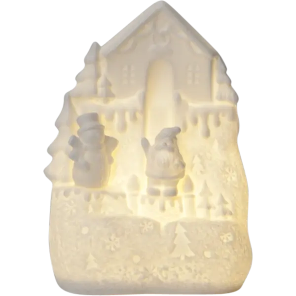 Batteridriven dekorationsfigur i porslin med LED-belysning. En härlig dekoration som sprider julstämning i hemmet.
