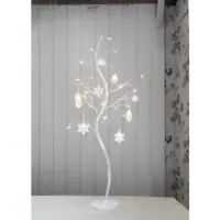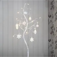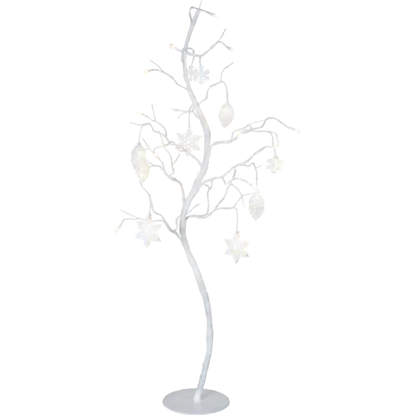 Vitt dekorationsträd med fina metalldetaljer. Trädet har 27 LED-ljuskällor som ger ett härligt varmvitt sken. Vacker dekoration att inreda med inomhus.