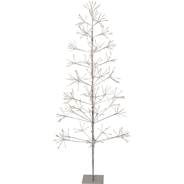 Silverfärgat dekorationsträd för utomhusbruk. Perfekt dekoration för att skapa en härlig stämning i trädgården eller på uteplatsen. Trädet är 180cm högt med 320 LED-ljuskällor som ger ifrån sig ett fint varmvitt sken.