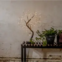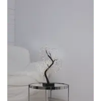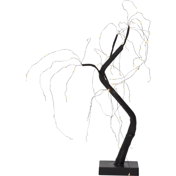 Fint dekorationsträd med dewdropslinga. Batteriboxen är placerad undertill i foten vilket gör produkten lättplacerad utan onödiga kablar. Ger ett härligt ljussken. För inomhusbruk.