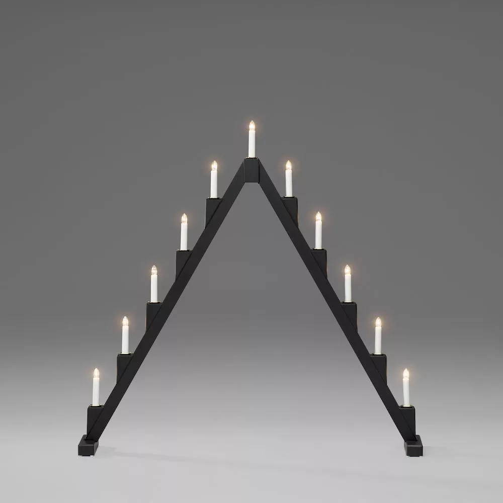 Ljusstaken är tillverkad av svartlackerat stål, vilket ger den en modern och tidlös look. Den har plats för 11 ljus, vilket ger ett vackert och stämningsfullt sken när den är tänd. Ljusen placeras i stadiga och säkra hållare som är utformade för att förhindra att de ramlar eller välter.