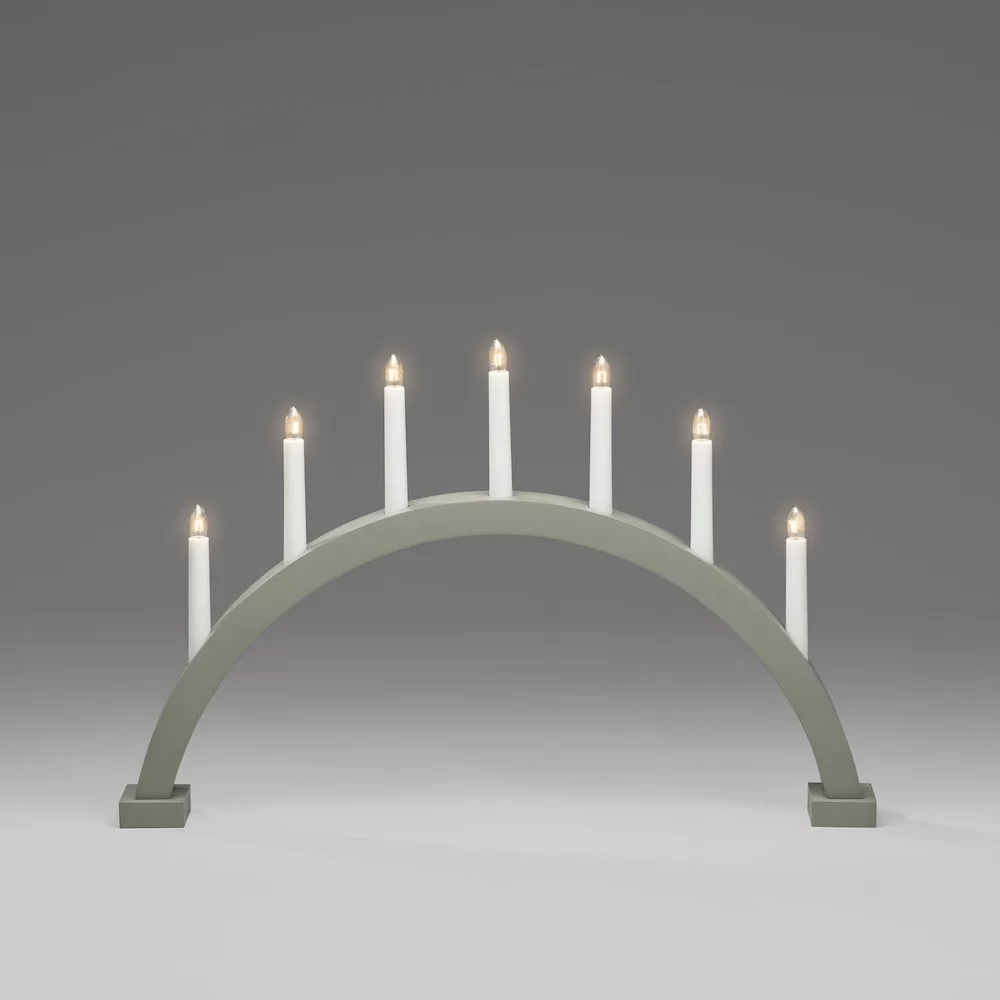 Denna eleganta elljusstake i form av en båge är perfekt för att sprida julglädje och skapa en mysig atmosfär i ditt hem. Med sina sju ljus ger den en härlig belysning som blir en fin dekoration i fönstret eller på bordet. Den grå/gröna färgen ger ett modernt och stilrent utseende som passar in i de flesta heminredningar.