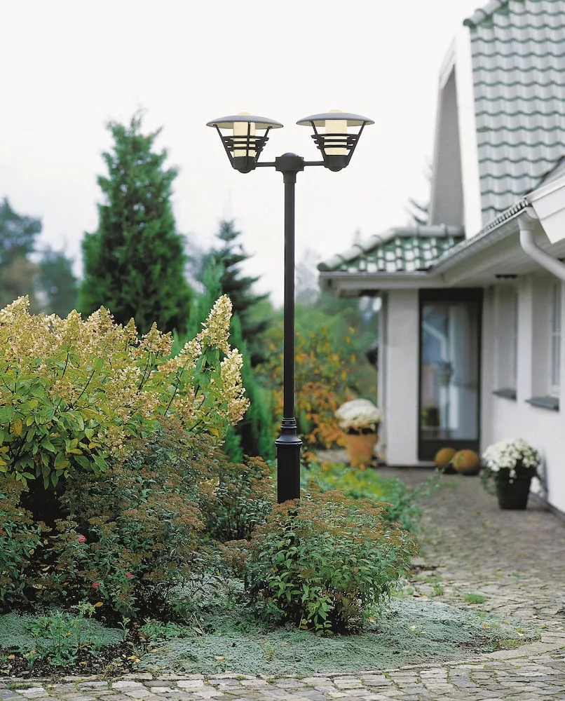 Gemini 2 är tillverkad av högkvalitativt aluminium och har en robust konstruktion som gör den tålig mot väder och vind. Den är utformad för att monteras på en stolpe och har en E27-sockel, vilket gör det enkelt att installera och byta ut ljuskällan.