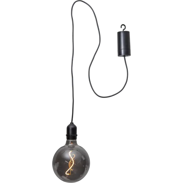 Elegant glasdekoration för både inom- och utomhusbruk. Rökfärgat glas med filament LED. Batteridriven med timer funktion.