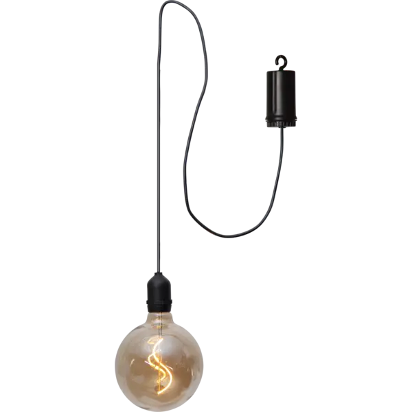 Elegant glasdekoration för både inom- och utomhusbruk. Amberfärgat glas med filament LED. Batteridriven med timer funktion.