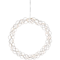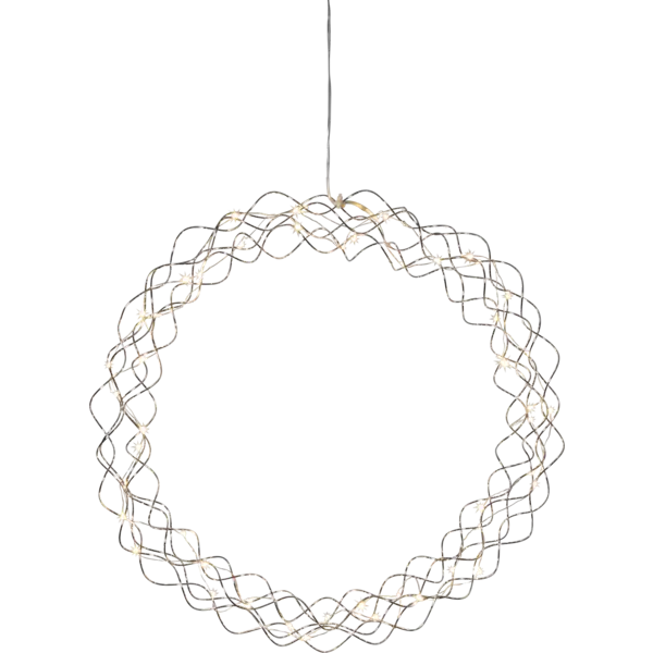 Dekorativ krans i krom med dew drop ljusslinga för inomhusbruk. Kransen har 50 LED-ljuskällor med varmvitt sken. Vacker dekoration att ha i fönstret och på väggen.