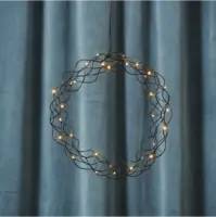 Dekorativ krans i svart med dew drop ljusslinga för inomhusbruk. Kransen har 30 LED-ljuskällor med varmvitt sken. Vacker dekoration att ha i fönstret och på väggen.