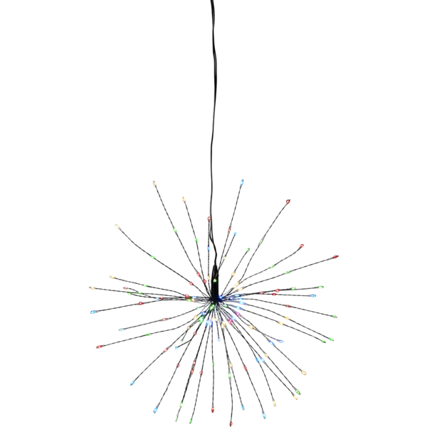 Vacker hängande dekor med små LED-ljuskällor som ger en glittrande glans. Underbar dekoration för helger och fester. Dekorationen är 26 cm lång och har 120 LED-ljuskällor ihärliga färger så som rött, grönt, gultoch blått.