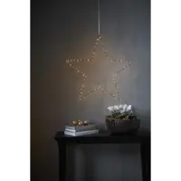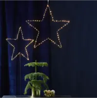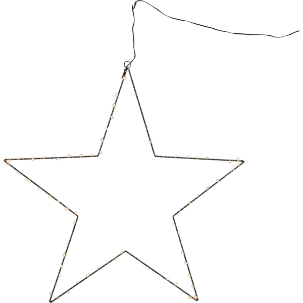Dekorativ metallstjärna med dew drop ljusslinga för inomhusbruk. Stjärnan har 80 LED-ljuskällor med varmvitt sken. Fin dekoration att hänga i fönstret och på väggen.