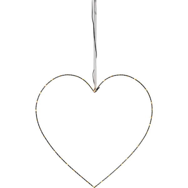 Dekorativ metallhjärta med dew drop ljusslinga för inomhusbruk. Stjärnan har 45 LED-ljuskällor med varmvitt sken. Fin dekoration att hänga i fönstret och på väggen.