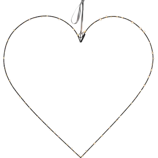 Dekorativ metallhjärta med dew drop ljusslinga för inomhusbruk. Stjärnan har 80 LED-ljuskällor med varmvitt sken. Fin dekoration att hänga i fönstret och på väggen.