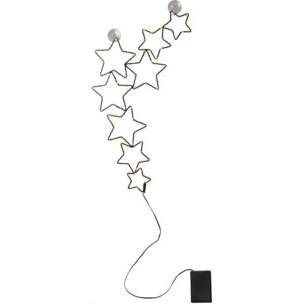 Den perfekta fönsterdekorationen i form av 8 stjärnor som hänger ihop. Fäst dekorationen med medföljande sugkoppar. Små LED-ljuskällor lyser fint när produkten är på. Drivs av batteri och har timer funktion. Härlig dekoration för den mörka årstiden, jul och advent.