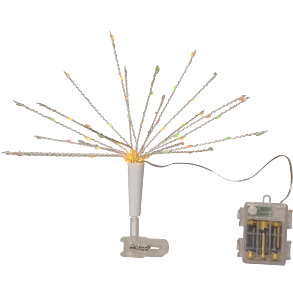 Toppstjärna med flerfärgat blinkande ljussken. En kul juldekoration som blir en blickpunkt i hemmet. Batteridosa med timer och som även passar för utomhusbruk. Enkel att montera med medföljande klämma.