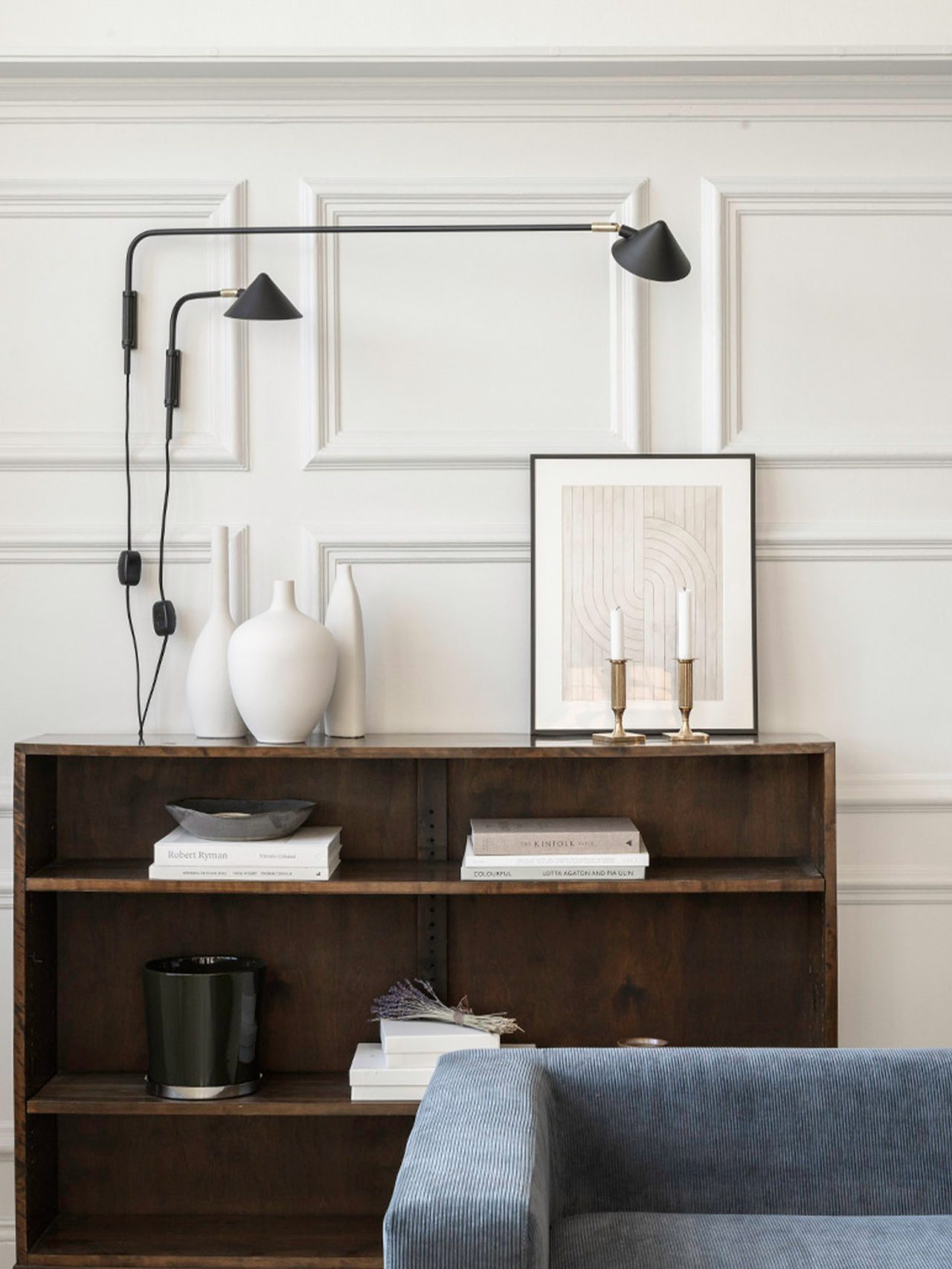 Vägglampan Kelly är en cool och toppig liten lamphatt som med guldfärgad insida ger en varm och härlig ljusåtergivning. Perfekt som sänglampa! Så snygg grafiskt med de enkla formerna och textilsladden som ansluter perfekt till metallen. Kelly är rörlig åt alla håll. Dimmer för att växla mellan läsljus och mys.Höjd cm 31 Längd från vägg cm 112 Diameter skärm cm 14 Färg Svart/guld Finish Matt Material Stål Material sladd Textil Färg sladd Svart Sockel G9 Dimmer Ja