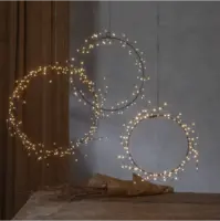 Stämningsfull krans i svart, 95 små led punkter lyser fint. Dekorerar till jul eller varför inte så fort den mörka årstiden börjar.