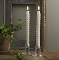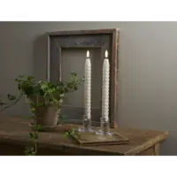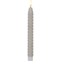 Beige antikljus med twist formad vax i vår Flamme serie. Den naturtrogna lågan lyser med ett varmvitt sken. Med inbyggd timer. storlek på ljuset med låga 25cm.