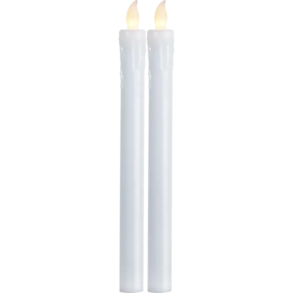 Fantastiskt fina antikljus i vitt. Ljusen är batteridrivna och 25cm höga. Perfekta att ha på matbordet eller i entrén för en hemtrevlig och varm känsla. Kommer i 2-pack och har en Push ON/OFF funktion.