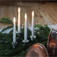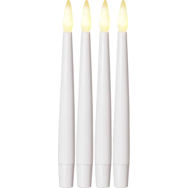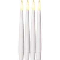 Vita antikljus i 4-pack i en mindre storlek: 1,5x15cm. Varmgul låga som skapar en mysig belysning. Perfekt att placera i en mindre ljusstake eller som julgransljus.