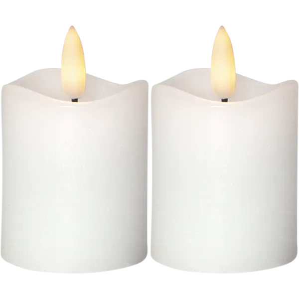2p votivljus med mycket naturtrogen låga som lyser med varmvitt sken. De har en inbyggd timer som lyser i 6 timmar.