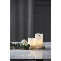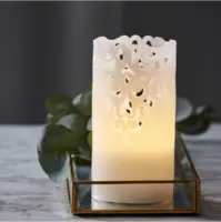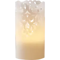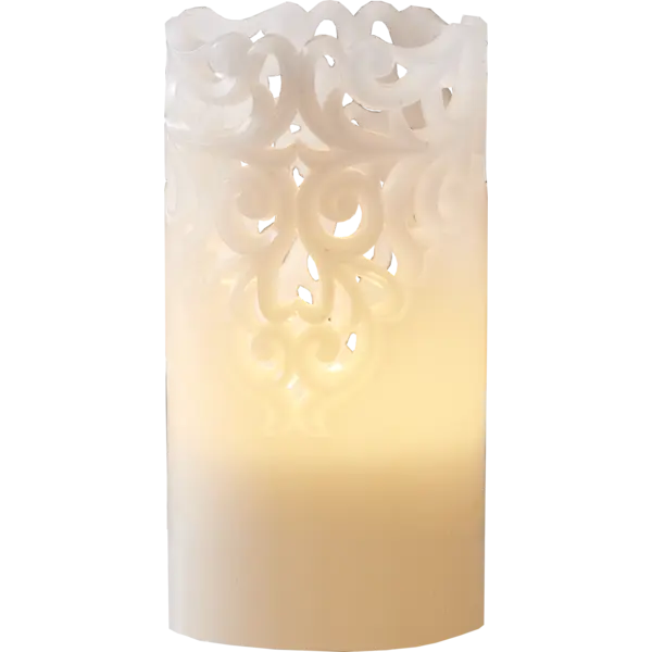 Batteridrivet vaxljus med utskurna mönster. Fint ljus att dekorera med i hemmet. Den inbyggda timern gör det lätt att ställa in när vaxljuset ska lysa.