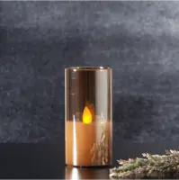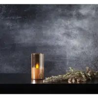 Glashållare med vaxljus inuti, Twinkle flamman lyser med ett naturligt varmt gult sken. Timerfunktion gör det enkelt att ställa in när ljuset ska lysa.