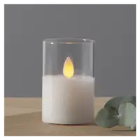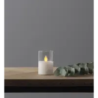Glashållare med vaxljus inuti, Twinkle flamman lyser med ett naturligt varmt gult sken. Timerfunktion gör det enkelt att ställa in när ljuset ska lysa.