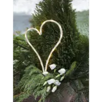 Vackert lysande utomhus-hjärta i ropelight med varmvitt sken. Hjärtat är batteridrivet och den inbyggda timerfunktionen gör det lätt att ställa in när produkten ska lysa.