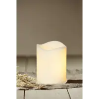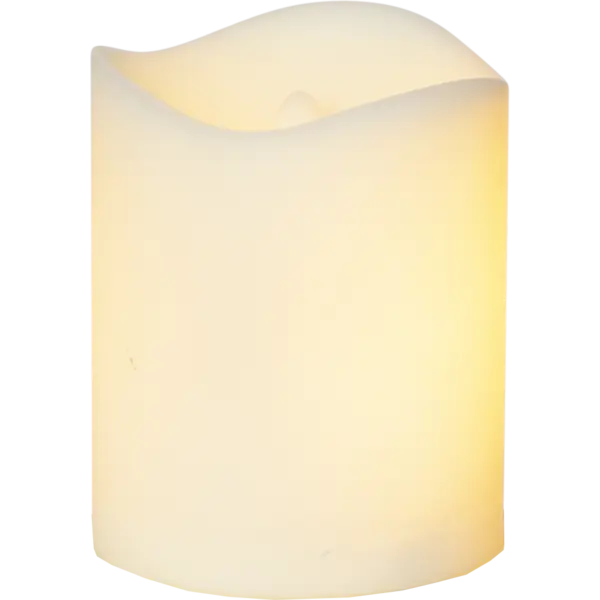 Litet vitt plastljus med dansande Flame låga inuti, med inbyggd timer.
