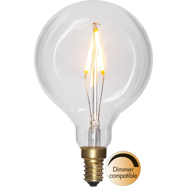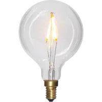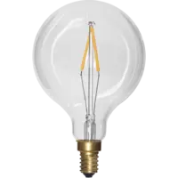 Globformad ljuskälla med E14-sockel, klart glas och LED. Ljuset är härligt behagligt med sin varmvita ton. Vacker i många armaturer och ljusstakar!