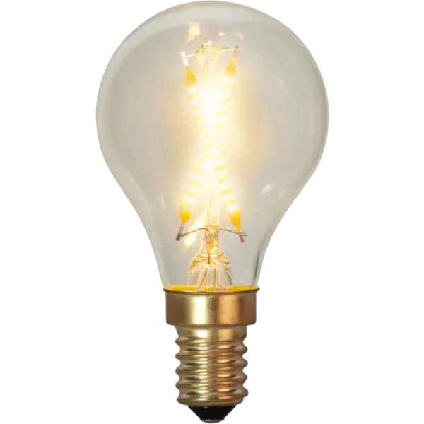 Dekorativ klotformad ljuskälla med LED som har mjukt sken och mycket lågt lumen. E14-sockel och färgtemperaturen är 2100K. 2 filament i kors ger ett mysigt och varmt sken!