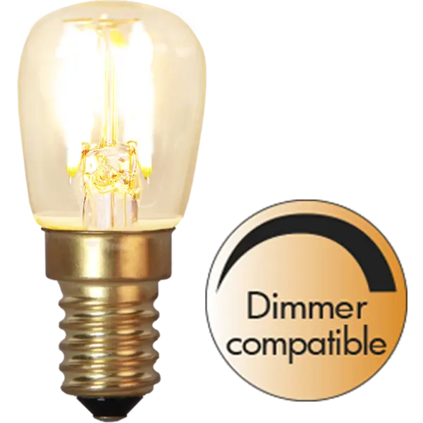 Päronlampa med E14-sockel. Varmvitt ljus 2100K och den går att dimra för att skpa bästa stämningen! Fin i pappersstjärnor och i ljuskronor.