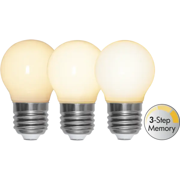 Lampa med 3-stegs klickdimring med minnesfunktion! Ljusstyrkan ändras enkelt genom slå av och på strömbrytaren. Välj mellan 35-175-350lm. Ljusfärgen är 2700K och sockeln är E27. Startar på senast använda ljusstyrkan.