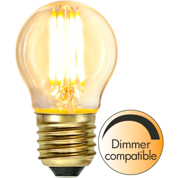 Dekorativ klotformad ljuskälla med LED som sprider ett varmt och mjukt sken. Lampans färgtemperatur är 2100K och den har E27-sockel. Den är dimmerkompatibel och kan därför ljusregleras för att ge rätt ljusstyrka till alla tillfällen.