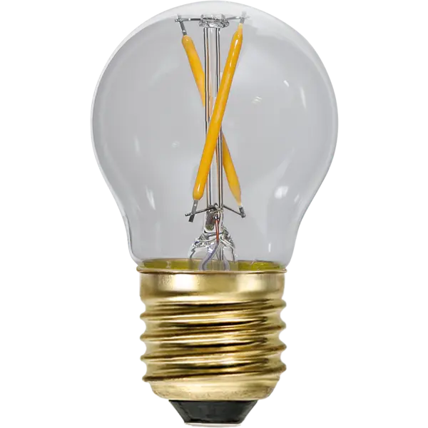 LED-lampa med soft glow och mycket lågt lumen. E27-sockel och färgtemperaturen är 2100K. 2 filament i kors ger ett mysigt och varmt sken!