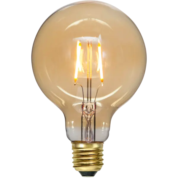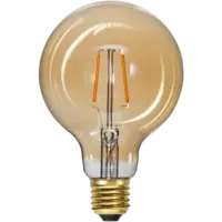 Decoration LED-lampa med amberfärgat glas som sprider härligt, varmvitt sken. Lampan har E27-sockel.