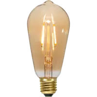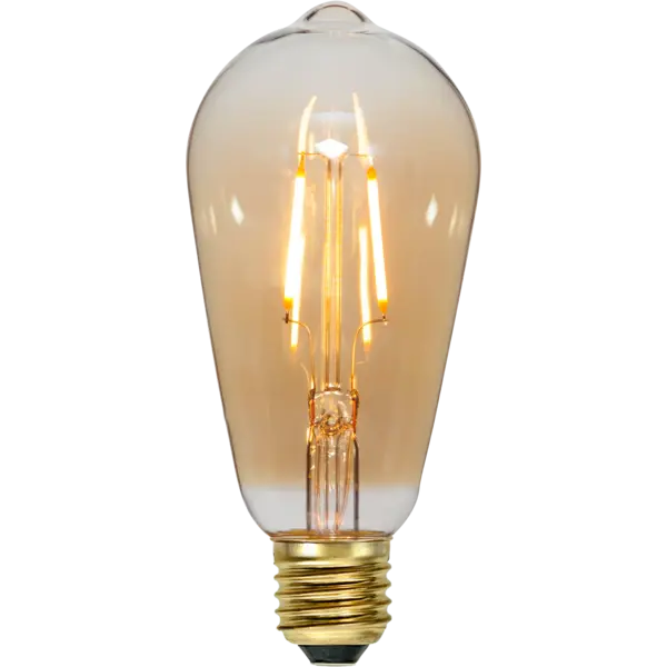 Ljuskälla med amberfärgat glas som ger varmvitt sken. Lampan har E27-sockel.