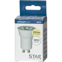 Spotlight mini GU10 med LED. Ljusskenet är varmvitt och spridningsvinkeln är 36°. Den mindre storleken gör att den passar i många armaturer.